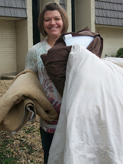 Saturday morning, Eric and I headed over the Dallas for our all day birthing class. We were looking forward to learning lots of information and hopefully becoming a little more prepared for Eden's big day. Our doctor had recommended a birthing class taught by Margie Wallis and we were super pleased with his recommendation. She was very knowledgeable and had lots of great information, breathing techniques and relaxation strategies to share with us. Now, I don't know if we feel more prepared after the class or more overwhelmed with all the information :) but we are very glad that we attended. For the class, we had to take 4 pillows, a blanket and snacks. The picture shows me right before the class started with my bundle of pillows and blanket.
